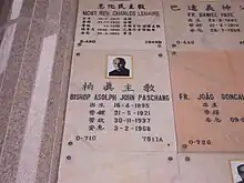 - Avec comme coconsécrateurs Mgr Enrico Valtorta, vicaire apostolique de Hong Kong et Mgr Gustave Deswazières M.E.P. (1882-1959), alors ancien vicaire apostolique de Pakhoi (Beihai).