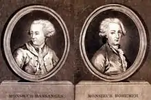 Marchands parisiens renommés dans le commerce de bijoux et de pierreries, Böhmer et Bassenge sont établis place Louis-le-Grand. Anciens joailliers de la cour de Pologne, ils comptent la cour de France et de nombreux souverains étrangers parmi leurs clients. Ils financent seuls la fabrication du collier en s'endettant considérablement. Le projet prend du temps en raison de la difficulté à rassembler les diamants de la pureté voulue. Lorsque Louis XV meurt en 1774, Madame du Barry est exilée et le collier est encore inachevé.