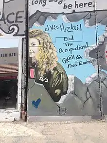 Le , soupçonnés par la police des frontières israélienne « d’abîmer et de vandaliser le mur de sécurité dans la zone de Bethléem »[2], deux Italiens et un Palestinien sont arrêtés pour avoir peint le visage de Ahed Tamimi sur le mur de séparation à Bethléem, en Cisjordanie[63].