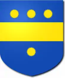 Les armes des Aicardo sont d'azur à la fasce d'or accolé de quatre touffes de feuilles d'arbres identiques, trois positionnées en tête et une en pointe.