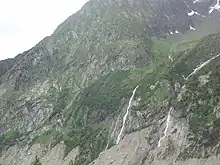 Cascades au-dessus de la Mer de Glace sur l'adret de l'aiguille à Bochard.