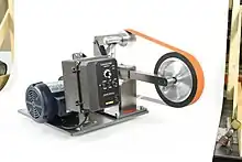- la bande abrasive montée sur un châssis fixe ou déplaçable (type de ponceuse) ;