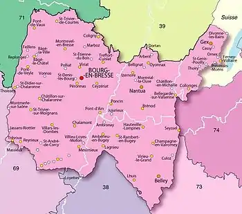 - la seconde est historiquement délimitée à l'ouest par la rivière d'Ain.