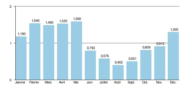 Le module de la rivière à Saint-Geoire-en-Valdaine est de 0,983 m3/s.