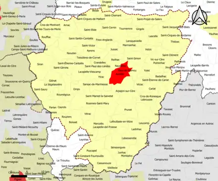 Communes de la couronneCantal83Arnac, Arpajon-sur-Cère, Ayrens, Badailhac, Boisset, Puycapel, Carlat, Cassaniouze, Cayrols, Crandelles, Cros-de-Montvert, Cros-de-Ronesque, Freix-Anglards, Giou-de-Mamou, Girgols, Glénat, Junhac, Jussac, Labesserette, Labrousse, Lacapelle-del-Fraisse, Lacapelle-Viescamp, Ladinhac, Lafeuillade-en-Vézie, Lapeyrugue, Laroquebrou, Laroquevieille, Lascelle, Leucamp, Mandailles-Saint-Julien, Marcolès, Marmanhac, Montsalvy, Montvert, Naucelles, Nieudan, Omps, Parlan, Polminhac, Prunet, Raulhac, Reilhac, Roannes-Saint-Mary, Rouffiac, Roumégoux, Rouziers, Saint-Antoine, Saint-Cernin, Saint-Chamant, Saint-Cirgues-de-Jordanne, Saint-Cirgues-de-Malbert, Saint-Clément, Saint-Étienne-Cantalès, Saint-Étienne-de-Carlat, Saint-Gérons, Saint-Illide, Saint-Mamet-la-Salvetat, Saint-Martin-Cantalès, Saint-Paul-des-Landes, Saint-Projet-de-Salers, Saint-Santin-Cantalès, Saint-Saury, Saint-Simon, Saint-Victor, Sansac-de-Marmiesse, Sansac-Veinazès, La Ségalassière, Sénezergues, Siran, Teissières-de-Cornet, Teissières-lès-Bouliès, Thiézac, Tournemire, Velzic, Vézac, Vezels-Roussy, Vic-sur-Cère, Vieillevie, Vitrac, Yolet, Ytrac, Le Rouget-Pers, Besse.