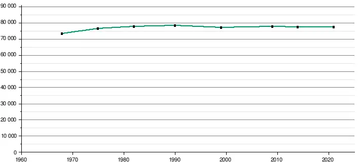 Cette aire est catégorisée dans les aires de 50 000 à moins de 200 000 habitants[2], une catégorie qui regroupe 18,4 % de la population au niveau national[5],[6].