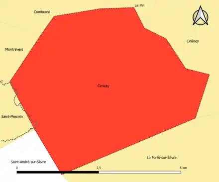 Localisation de l'aire d'attraction de Cerizay dans le département des Deux-Sèvres. | |