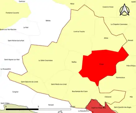 Localisation de l'aire d'attraction de Craon dans le département de la Mayenne. | |