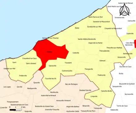 Localisation de l'aire d'attraction de Fécamp dans le département de la Seine-Maritime. | |