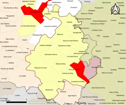 | Ferrières-en-Bray | 76260 | Seine-Maritime | commune du pôle principal | 15,88 | 1 675 (2021) | 105 | |