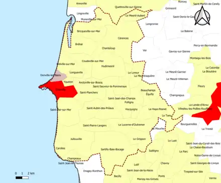 | Donville-les-Bains | 50165 | Manche | commune du pôle principal | 2,75 | 3 103 (2021) | 1 128 | |