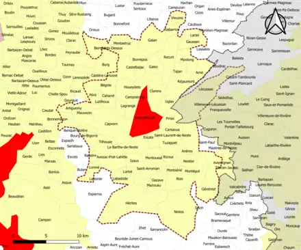 Communes de la couronneHautes-Pyrénées61Anères, Arné, Arrodets, Artiguemy, Aventignan, Avezac-Prat-Lahitte, La Barthe-de-Neste, Bazus-Neste, Bégole, Benqué-Molère, Bernadets-Dessus, Bize, Bizous, Bonnemazon, Bonrepos, Caharet, Campistrous, Capvern, Castelbajac, Clarens, Escala, Espèche, Galan, Galez, Gaussan, Gazave, Générest, Hautaget, Hèches, Houeydets, Izaux, Labastide, Laborde, Lagrange, Laran, Lombrès, Lomné, Lortet, Lutilhous, Mauvezin, Mazouau, Monlong, Montastruc, Montégut, Montoussé, Montsérié, Nestier, Nistos, Péré, Pinas, Recurt, Réjaumont, Sabarros, Saint-Arroman, Saint-Laurent-de-Neste, Tajan, Tilhouse, Tuzaguet, Uglas, Vieuzos, Cantaous.