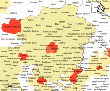 | Nombre de communes | 101 soit  100 (Landes) + 1 (Gers)  |