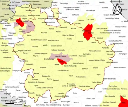 Localisation de l'aire d'attraction de Rodez dans le département de l'Aveyron. | |