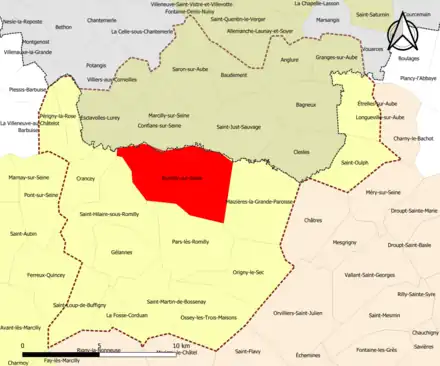 Localisation de l'aire d'attraction de Romilly-sur-Seine dans le département de l'Aube.  | |