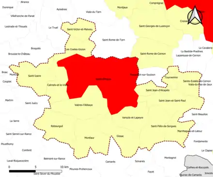 | Vabres-l'Abbaye | 12286 | Aveyron | commune de la couronne | 41,36 | 1 214 (2021) | 29 | |