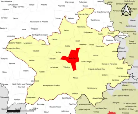 Localisation de l'aire d'attraction de Saint-Flour dans le département du Cantal. | |