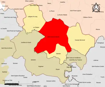 | Nombre de communes | 11 soit  5 (Haute-Vienne) + 4 (Dordogne) + 2 (Corrèze)  |