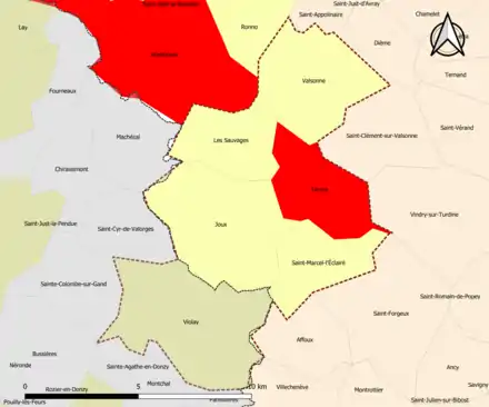 | Nombre de communes | 6 soit 5 (Rhône) + 1 (Loire) |