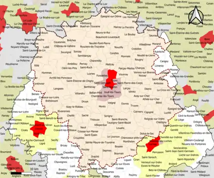Localisation de l'aire d'attraction de Tours dans le département d'Indre-et-Loire. | |