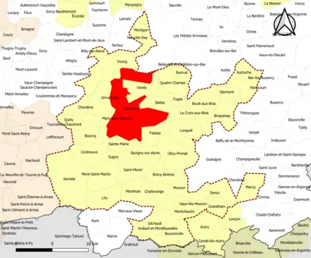 Localisation de l'aire d'attraction de Vouziers dans le département des Ardennes. | |