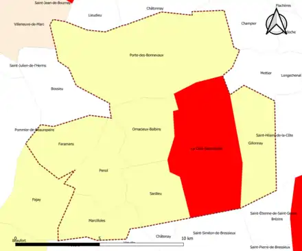 Localisation de l'aire d'attraction de la Côte-Saint-André dans le département de l'Isère.  | |