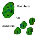 La question de savoir s'il vaut mieux privilégier un petit nombre de grandes aires protégées ou un grand nombre de petites est un débat qui agite la communauté des spécialistes de la conservation de la nature depuis les années 1970-1980 :