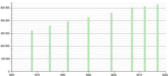 L'évolution démographique[6] ci-dessous concerne l'aire urbaine selon le périmètre défini en 2010.