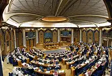 Le palais se divise en deux bâtiments de tailles différentes : un grand palais pour la cour royale, les réceptions officielles et la réunion du conseil des ministres (choura ad diwan), ainsi qu'un palais plus petit possédant un parc privé, réservé au souverain et à sa famille.