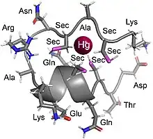Ces recherches mettent en lumière la manière dont les oiseaux, les cétacés et les poissons détoxifient le méthylmercure. La déméthylation du complexe MeHgCys en Hg(Sec)4 est catalysée par la sélénoprotéine P (SelP) au sein de laquelle nucléent des clusters de Hgx(Sec,Se)y qui ensuite croissent probablement par auto-assemblage de SelP mercurées, comme cela est courant dans les processus de biominéralisation, pour in fine former des cristaux de séléniure de mercure (HgSe), inertes et non toxiques.