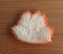 La richesse en fibres de l'albédo d'orange lui permet de se substituer aux produits carnés[26]. Le remplacement de 10 % de la farine par le l'albedo d'orange et de citron dans le tarhana (soupe fermentée du Moyen-Orient à base de yaourt) améliore le gout et la stabilité de l'émulsion[27].