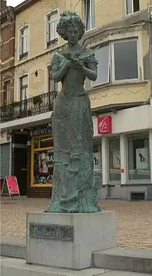 Statue de sainte Aldegonde au portail de l'église de Noirchain (Hainaut, Belgique) qui lui est dédiée | |