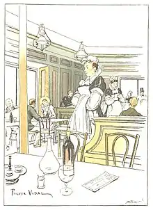- Bouillon Duval (avant 1900), boulevard Saint-Germain no 170[28] près de la place Saint-Germain et à côté du Café de Flore (vers 1887) qui est au no 172 avec un restaurant au 1er étage[25]