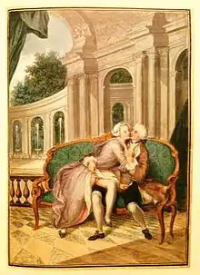 C'est encore à Passy que le fermier fait imprimer cette année-là le Tableaux des mœurs du temps dans les différents âges de la vie, vraisemblablement à moins de 3 exemplaires : l'un d'entre eux est parvenu jusqu’à nous, illustré de gouaches originales érotiques sans doute de la main du miniaturiste Alexandre Antoine Marolles ; cet ouvrage constitue l'un des plus beaux curiosa jamais réalisé. Après la mort du fermier, le livre fut saisi par ordre du Roi.