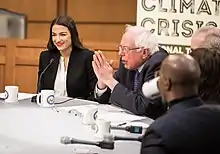 En , elle apporte son soutien à la candidature de Bernie Sanders pour les primaires démocrates de 2020[19]. Elle déclare en que dans un autre pays elle ne serait probablement pas membre du même parti politique que le favori de ces primaires, Joe Biden[20], souvent perçu comme un candidat trop libéral aux yeux de l’aile gauche du Parti démocrate[21]. Bernie Sanders abandonne la course en avril et un mois plus tard, il met en place des forces opérationnelles (task forces) communes avec les équipes de Joe Biden, destinées selon le site Mediapart « à afficher l’union politique des démocrates face à Trump et à discuter du programme présidentiel de Biden ». Ocasio-Cortez est ainsi nommée présidente de la Commission climat de l'équipe de campagne de Joe Biden, aux côtés de John Kerry, ancien secrétaire d'État des États-Unis entre 2013 et 2017[22].