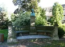 Après l'extension de l'hôpital civil de 1875 à 1918, Gustave Oberthür demande à Alfred Marzolff de réaliser le buste du professeur de pathologie chirurgicale (1871-1900) Eugène Boeckel (1903) dans l'enceinte de l'Hôpital civil, derrière l'ancienne pharmacie[52]. Sa statue Allégorie de la maladie pour la commémoration de Pasteur n'est pas retenue. Cette statue d'un homme terrassant un serpent (1919) sera installé en haut des escaliers de l'Institut de bactériologie devant l'entrée des Urgences de l'hôpital civil de Strasbourg, 3, rue Koeberlé.