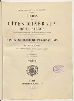 - Alfred Soubeiran, Études des gîtes minéraux de la France : Bassin houiller du Pas-de-Calais, sous-arrondissement minéralogique d'Arras, t. I, Imprimerie nationale, Paris, , 344 p. (BNF 31386779, lire en ligne), p. 9, 29, 75, 93, 139, 159, 189, 203, 231, 289.