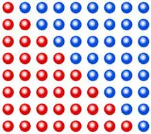 Un nombre carré est un nombre égal à un certain entier multiplié par lui-même. Par exemple, 9 est un nombre carré car 3 × 3 = 9. Il se présente de manière figurée comme un carré. Pour établir la liste des premiers carrés, l’arithmétique géométrique peut être utile. On suppose, par exemple, connue la liste jusqu’à 7 × 7 = 49. Pour trouver la valeur du carré suivant, de côté 8, on raisonne à l’aide de la figure de gauche. Le nombre 8 × 8 peut être vu comme la somme de 7 × 7 correspondant aux billes rouges, de 7 correspondant aux billes vertes et 8 correspondant aux billes bleues. De manière générale, on dispose de l’égalité[d 2] :