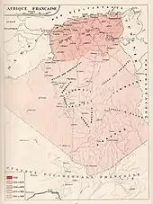 En 1839, les autorités françaises adoptent le nom d’Algérie — dérivé du nom arabe Al-Djaza’ir (الجزائر) — comme appellation officielle en langue française du territoire correspondant. L'entreprise de conquête se termine par l'annexion d'une partie du Sahara en 1902, tandis que la colonisation proprement dite voit la création des départements français d'Algérie (1848-1957) — Oran, Alger et Constantine — et des territoires du Sud (1902-1957).[réf. souhaitée]