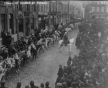 Au cours de la Première Guerre mondiale, les tirailleurs et spahis algériens ont mené les mêmes combats que les soldats « français ». Les Algériens ont laissé 26 000 des leurs sur les champs de bataille d'Orient et d'Occident de la Première Guerre mondiale. De la nécropole nationale de Notre-Dame-de-Lorette aux champs de bataille de la Hartmannswillerkopf, en passant par l'ossuaire de Douaumont, le sacrifice consenti par les troupes d'Afrique du Nord et plus particulièrement par les Algériens, est encore de nos jours perceptible par les tombes marquées du croissant. Les Algériens ont été de toutes les grandes batailles de l'armée française de la Première Guerre mondiale. Ils se sont distingués notamment dans la Bataille de Verdun, dans la Bataille de la Somme en 1916, ou encore au chemin de Dames en 1917. Les tirailleurs et spahis algériens ont été, pendant ces quatre années de guerre, mêlés à toutes les batailles de l'armée française.