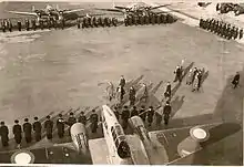 Le , la bataille de Mers el-Kébir, près d'Oran, oppose la flotte britannique à la marine française loyaliste[60]. En 1941, le président américain Roosevelt charge le diplomate Robert Murphy d'une mission de renseignement en Algérie. Elle consiste à entrer en liaison avec des officiers de l'armée vichyste et les recruter pour soutenir un débarquement allié. Le commandement en chef du débarquement allié incombe à l'Américain Eisenhower. Ils établissent également de nombreux contacts, non seulement avec les autorités locales de Vichy, mais aussi avec la Résistance afin de neutraliser les batteries côtières de Sidi-Ferruch et le 19e corps d'armée française d'Alger pendant une quinzaine d'heures. 400 résistants français occupent, dans la nuit du 7 au 8 novembre, les points stratégiques d'Alger, et mettent aux arrêts les plus hauts dirigeants civils et militaires vichystes, tels que le général Juin et l'amiral Darlan. L'opération sera baptisée quelques mois plus tard putsch d'Alger.