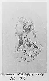 Les vingt premières années de la conquête furent celles d'une « violence exacerbée » ; à la résistance algérienne répond alors une répression féroce de l'armée française. La répression touche les combattants et leurs familles mais également tout l'environnement social et économique des tribus insoumises[37]. Les historiens distinguent deux types de pertes dans les conquêtes, celles de la conquête à proprement parler et celles dues aux conséquences de la domination sur les indigènes. La brutalité de la conquête est décrite et résulte des méthodes de guerre employées : par exemple Bugeaud va enfumer les Arabes et Berbères rebelles dans les grottes[38],[39]. Diverses exactions sont décrites : têtes coupées brandies fièrement en signe de victoire, égorgement d'hommes, poursuites lors des razzias et les enfumages ; l'issue la plus probable est la mort plutôt que la captivité pour les hommes, femmes et enfants pris dans le conflit ou sous le « rouleau compresseur de l'armée française »[40].