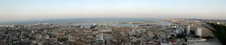 Située au bord de la mer Méditerranée, la ville d'Alger est en fait constituée de plusieurs communes de la wilaya d'Alger dont elle donne son nom en tant que chef-lieu mais n'a ni personnalité juridique, ni structure d'administration en propre. L'unité urbaine d'Alger comptait 2 481 788 habitants selon l'Office national des statistiques algérien d'après le dernier recensement de 2008[4]. Avec 4,4 millions d'habitants selon le ministère des Affaires étrangères français[5], tandis que l'agglomération en comptait environ 6 727 806 habitants en 2010 suivant le classement des 100 plus grandes villes du monde par World Gazetteer[6] et 7 796 923 habitants en 2020 selon Population Data[7], Alger serait d'après ces deux dernières sources la première agglomération du Maghreb et du littoral méditerranéen.