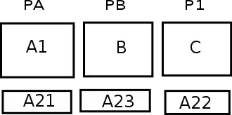 - P1 estime que PB ne reçoit plus que lui. En effet, P1 a choisi son morceau de A2 avant de PB, donc A22 ≥ A23 selon lui. En d'autres termes : C + A22 ≥ B + A23.