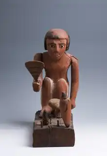 L’art funéraire, retraçant la vie quotidienne les résume ; on n’y trouve pas à proprement parler de recettes de cuisine mais des informations sur les pratiques alimentaires. Les ouchebtis, petites statues en calcaire ou en bois, représentent des serviteurs au travail préparant le pain, écrasant des céréales, brassant la bière, rôtissant des volailles et abattant des bœufs.