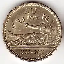 Elle reparaît cependant avec la peseta, qui se base elle-même sur l'allégorie utilisée pendant le règne d'Hadrien.