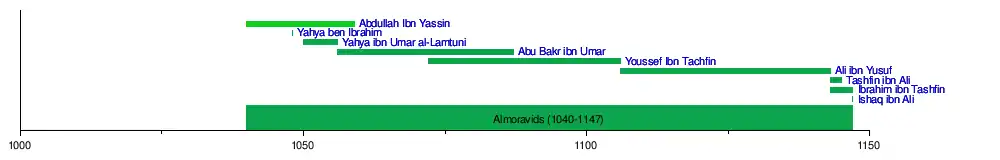- 1040-1059 : Abdullah Ibn Yassin, imam almoravide (fondateur)