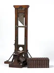 - Modèle réduit de guillotine avec le panier servant à la réception du corps