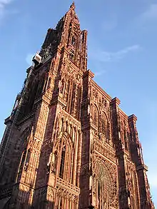 L'Alsace est avant tout connue pour le grès à Voltzia, du Buntsandstein, qui confère sa couleur à la cathédrale de Strasbourg. Le granite des crêtes vosgiennes et les gneiss de Sainte-Marie-aux-Mines, ainsi que le Dévonien-Carbonifère de la vallée de la Bruche présentent également un intérêt[23].