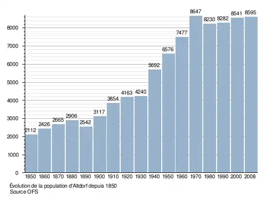 Le graphique suivant résume l'évolution de la population d'Altdorf entre 1850 et 2008[5] :